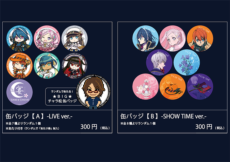 ※缶バッジ【A】にはランダムであたり券を封入致します。景品への引き換えは当日会場限定となります。